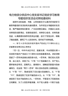电力物资分供应中心党支部书记党史XX教育专题组织生活会对照检查材料.docx