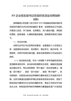 XX企业党支部书记在组织生活会对照剖析材料.docx