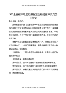 XX企业在本年度组织生活会和民主评议党员主持词.docx