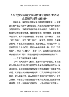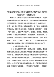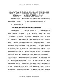党支部党史XX教育专题组织生活会班子对照检查材料(集团公司).docx