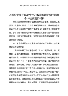X国企党员干部党史XX教育专题组织生活会个人检视剖析材料.docx