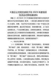 XX国有企业党支部202X年度六个带头组织生活会对照检查材料.docx