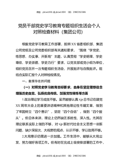 党员干部党史XX教育专题组织生活会个人对照检查材料(集团公司).docx