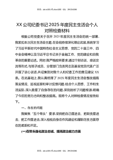 XX公司纪委书记2025年度民主生活会个人对照检查材料.docx