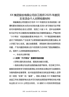 XX集团股份有限公司总工程师2025年度民主生活会个人对照检查材料.docx