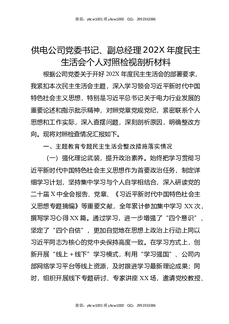 供电公司党委书记,副总经理202X年度民主生活会个人对照检视剖析材料.docx