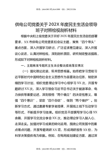 供电公司党委关于202X年度民主生活会领导班子对照检视剖析材料.docx