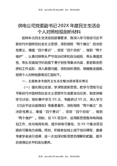供电公司党委副书记202X年度民主生活会个人对照检视剖析材料.docx