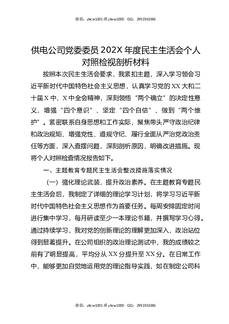 供电公司党委委员202X年度民主生活会个人对照检视剖析材料.docx