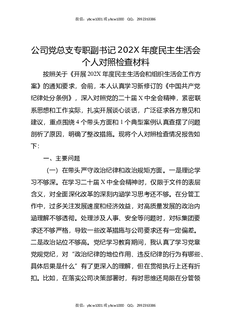 公司党总支专职副书记202X年度民主生活会个人对照检查材料.docx
