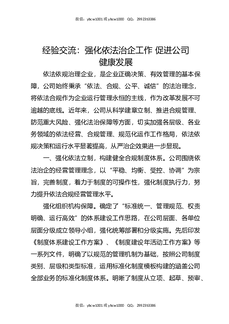 经验交流:强化依法治企工作,促进公司健康发展.docx
