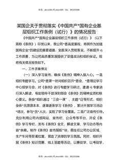 某国企关于贯彻落实《中国共产党国有企业基层组织工作条例(试行)》的情况报告.docx