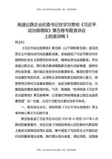 高速公路企业纪委书记在学习贯彻《总书记谈治国理政》第五卷专题宣讲会上的宣讲稿1.docx