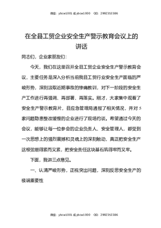 在全县工贸企业安全生产警示教育会议上的讲话.docx