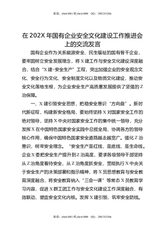 在202X年国有企业安全文化建设工作推进会上的交流发言.docx