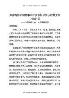 旅游有限公司董事长在安全反思警示教育大会上的讲话.docx
