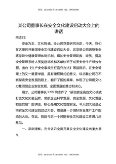 某公司董事长在安全文化建设启动大会上的讲话.docx