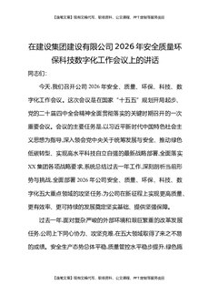 在建设集团建设有限公司2026年安全质量环保科技数字化工作会议上的讲话.docx