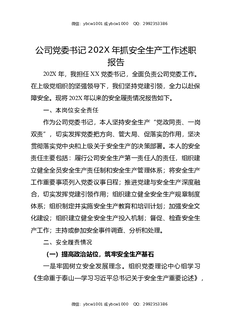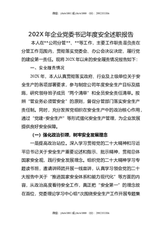 202X年企业党委书记年度安全述职报告.doc