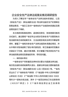 企业安全生产法律法规落实情况调研报告.docx