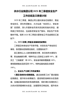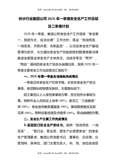 供水行业集团公司202X年二季度安全生产工作总结及三季度计划.docx