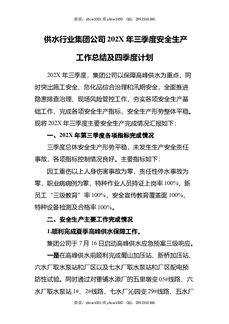 供水行业集团公司202X年三季度安全生产工作总结及四季度计划.docx