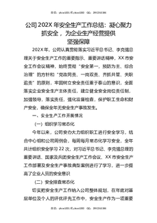 公司202X年安全生产工作总结:凝心聚力抓安全,为企业生产经营提供坚强保障.doc