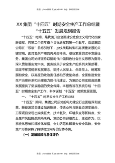 XX集团“十四五”时期安全生产工作总结暨“十五五”发展规划报告.docx