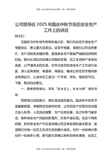 公司领导在2025年国庆中秋节前后安全生产工作上的讲话.docx