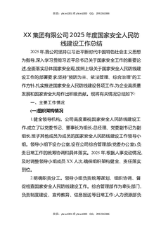 XX集团有限公司2025年度国家安全人民防线建设工作总结.docx