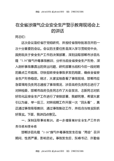 在全省涉煤气企业安全生产警示教育现场会上的讲话.docx