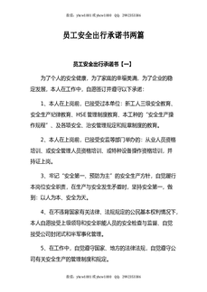 员工安全出行承诺书两篇.docx