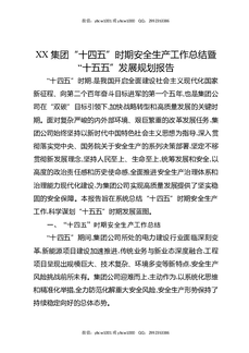 XX集团“十四五”时期安全生产工作总结暨“十五五”发展规划报告(精品).docx