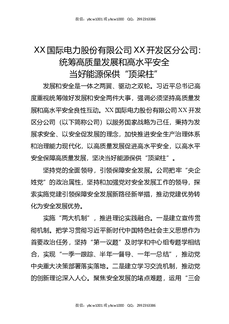 XX国际电力股份有限公司XX开发区分公司:统筹高质量发展和高水平安全,当好能源保供“顶梁柱”.docx