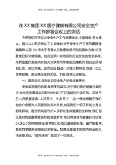 在XX集团XX医疗健康有限公司安全生产工作部署会议上的讲话.docx