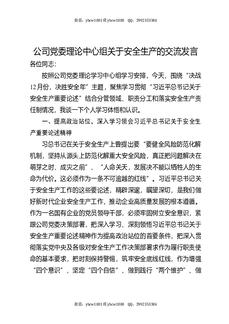 公司党委理论中心组关于安全生产的交流发言.docx