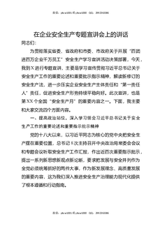 在企业安全生产专题宣讲会上的讲话.doc
