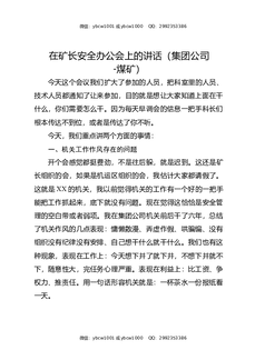 在矿长安全办公会上的讲话(集团公司,煤矿).docx