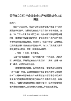 领导在202X年企业安全生产专题推进会上的讲话.docx