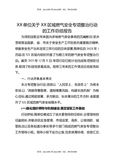 XX单位关于XX区域燃气安全专项整治行动的工作总结报告.docx