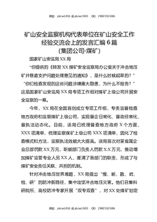 矿山安全监察机构代表单位在矿山安全工作经验交流会上的发言汇编(6篇)(煤矿).docx