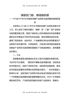煤都变门都,煤城焕新颜——XX省XX市宁乡市煤炭坝镇产业转型与高质量发展调研报告.docx