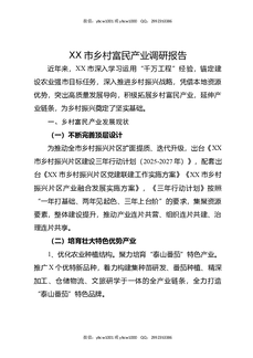 XX市乡村富民产业调研报告.docx