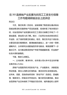 在XX县房地产业发展与农民工工资支付保障工作专题调研座谈会上的讲话.docx