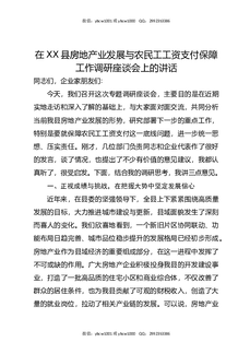 在XX县房地产业发展与农民工工资支付保障工作调研座谈会上的讲话.docx
