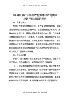 XX县发展壮大新型农村集体经济的模式及路径探析调研报告.docx