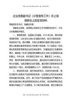 企业党委副书记(分管宣传工作)在上级调研会上的发言材料.docx