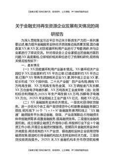 关于金融支持再生资源企业发展有关情况的调研报告.docx