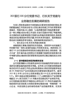 XX银行XX分行党委书记、行长关于党建与业务融合发展的调研报告.docx