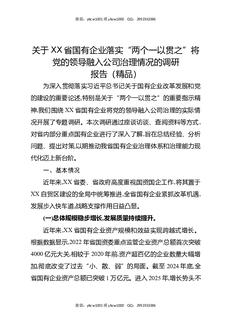 关于XX省国有企业落实“两个一以贯之”将党的领导融入公司治理情况的调研报告(精品).docx
